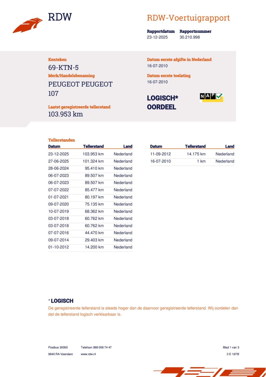 Mooie Peugeot 107 automaat, afkomstig van de 2e eigenaar met slechts 103.000km op de teller. Recent onderhoud gehad waarbij ook de uitlaat compleet vervangen is.